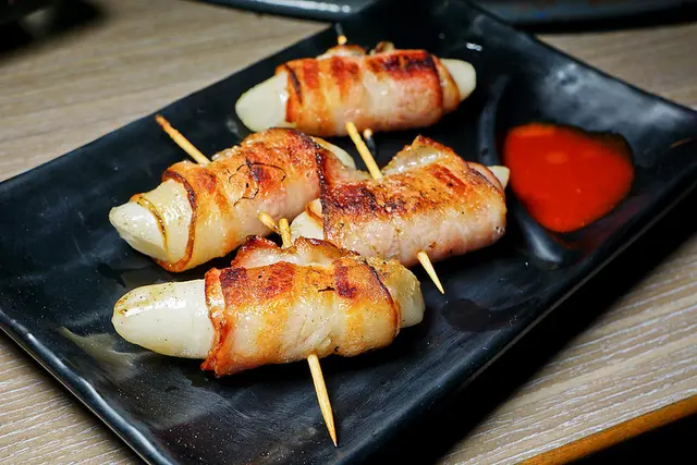 這個很喜歡,可能是因為我對年糕或麻糬一類都特別愛,搭配培根的油香,好吃