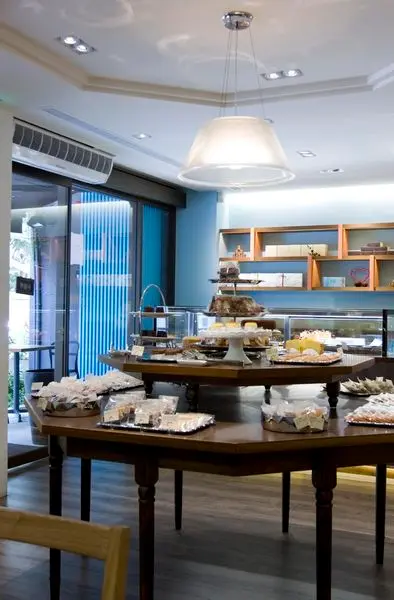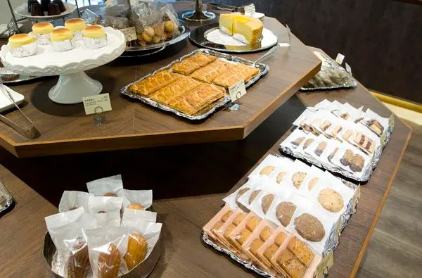 從座位往中間陳列糕點看去 -
