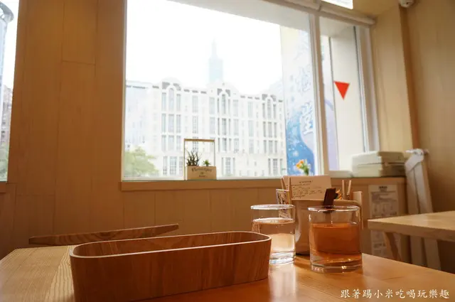 小米很喜歡他們2f的景觀, 可以輕鬆喝著飲料, 邊欣賞外面101/貴婦百貨/微風廣場等台北地標, 而且看著忠孝東路外人來人往的車潮人潮, 有一種眾人"繁忙"皆獨"閒" 的慢活心情