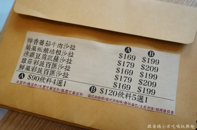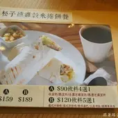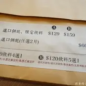 餐點有分A B餐, 右邊指的是可以選的飲料價格, 不是兩個加起來, 剛開始看小米也搞模糊了, 以為是兩邊價格加起來這麼貴XD 其就是是 A 159元可以4選1飲料 , B 189元可以5選1飲料