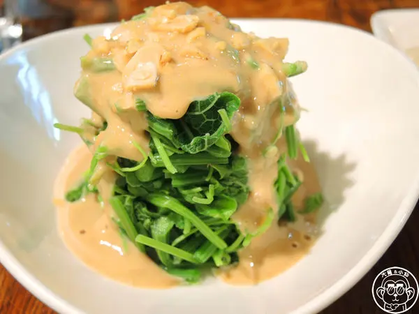 龍鬚菜不會硬柴,甜甜的胡麻醬讓乏味的龍鬚菜增添許多風味