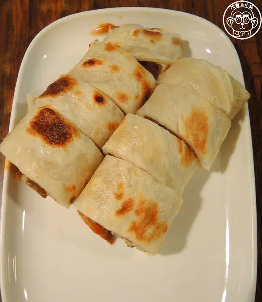 鹹豬肉捲餅(98元)通常包在捲餅裡的都是牛肉、豬肉,這裡很特別的夾進鹹豬肉