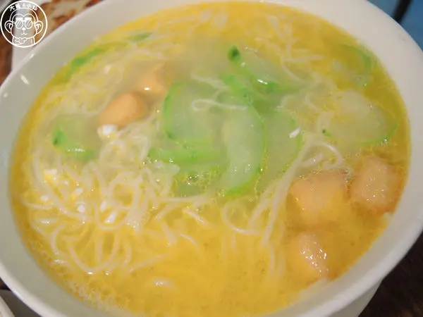鹹蛋絲瓜麵線(98元)金黃色湯底比想像的更清爽不鹹膩