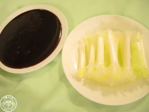 甜麵醬炒過後還加上水、糖、麻油熬至彼此相融,搭配大蔥吃已讓我吃的津津有味