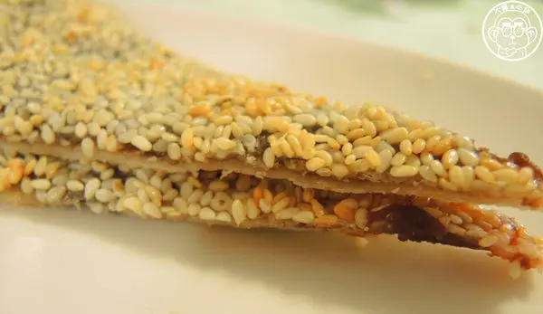 除了上頭的白芝麻會逗留在牙縫,薄而豆沙鋪得恰到好處的鍋餅不黏牙