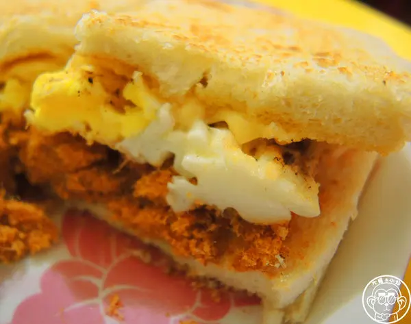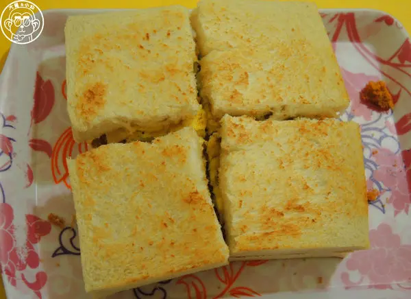 乳肉蛋(50元)直接切成4大塊,吐司乾煎烤製微焦香