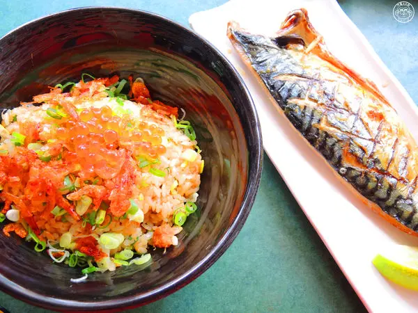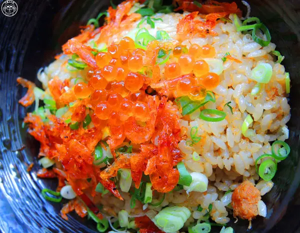 豪邁的鮭魚卵及香蔥和著櫻花蝦炒飯,鮮透飽滿