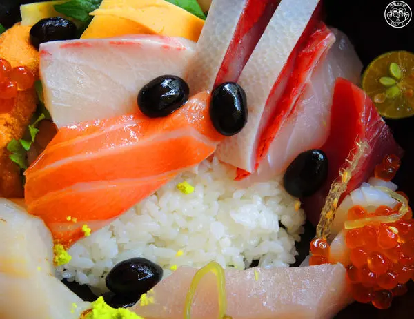 下面的白飯是我喜歡的冷醋飯,攪和全部海鮮夾雜醋飯扒入口,滿口海味