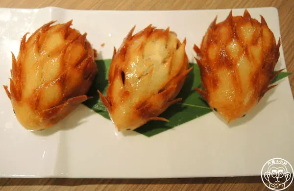 鳳梨大蝦球(287元/標準)好像一盤藝術品喔!
