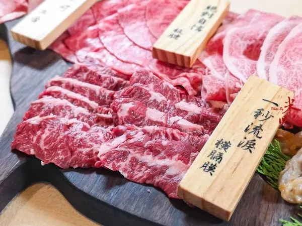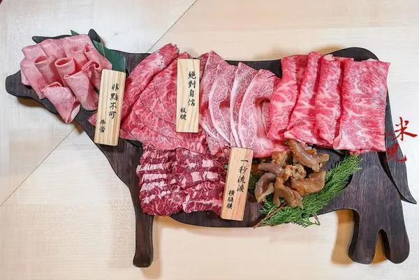 我們四人共享,店家把不同部位的和牛盛裝在樂軒著名的"牛一頭"木板上出菜,氣勢十足!