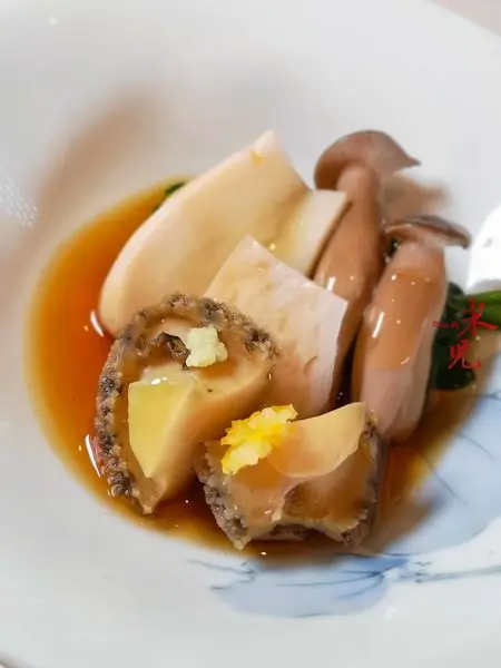 熱前菜是滷鮑魚,還有可口的山藥和菇類。