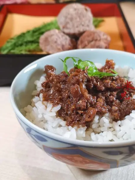 餐前會先送上一碗和牛肉臊飯,味道還頗不錯的。那米飯真可口。