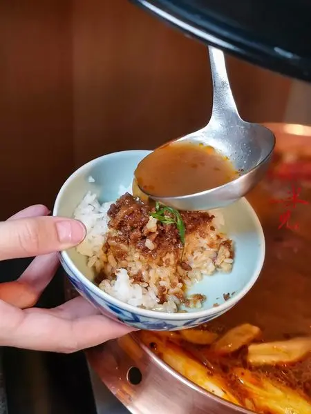 如果跟坊間知名的麻辣鍋店比,鍋底是沒那麼厲害,但是因為涮食的食材都頗高檔,前菜、牛肉臊飯都頗可口,肉臊飯吃到一半服務員會幫你加點麻辣湯,吃起來又是另一番風味。