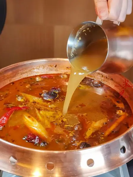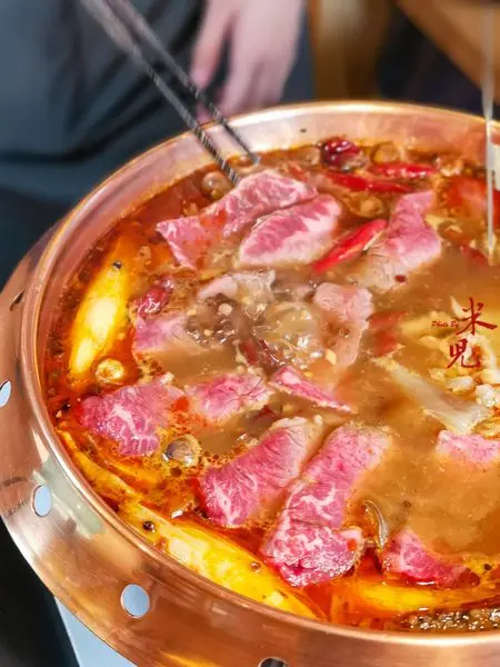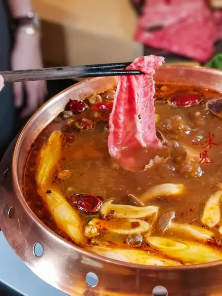 這裡的麻辣鍋走香麻微辣路線,如果喜歡辣一點可以請服務生加辣,用來涮食和牛倒是挺適合的,我很少吃那麼多片和牛不覺得膩,可能也是因為每種部位一人就只品嘗一片,不同的口感,整體吃下來還是不錯的。