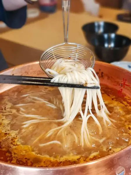 因為麵已經事先煮過,所以只需輕柔涮煮即可起鍋