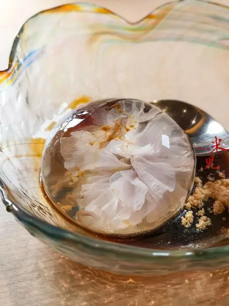 飯後甜點最受歡迎的就是櫻花水信玄餅~~加了黑糖蜜和黃豆粉,真的好好吃~