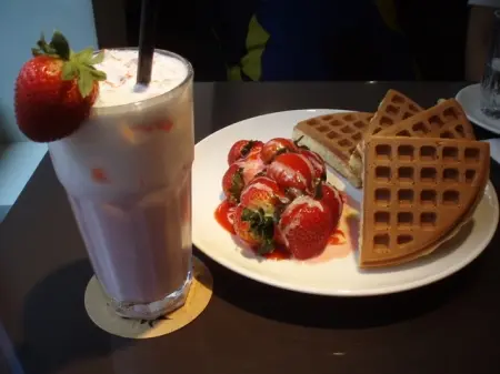 咖啡二弄~~豪華的草莓冰淇淋鬆餅