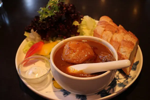法國麵包的氣孔很棒,配上沾醬很誘人,榮登本日第一名鹹點。