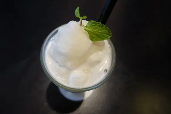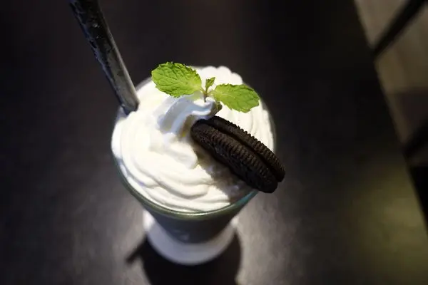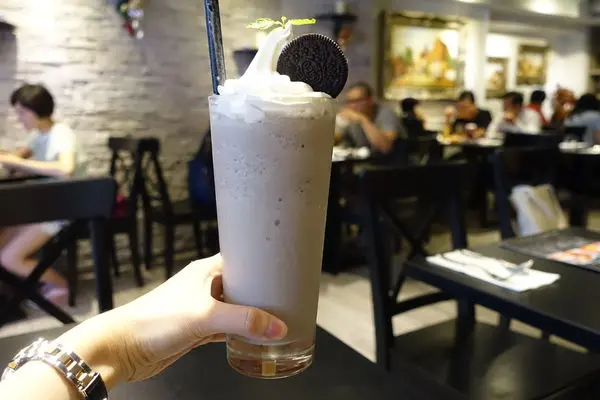 打成濃稠狀的Oreo奶昔,餅乾已經攪拌的非常細碎,咬不太到,