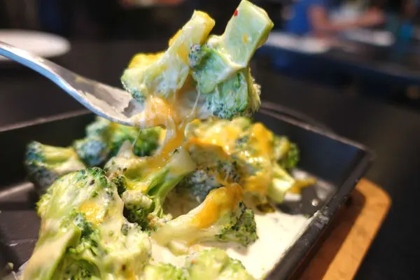 半融化狀態的起司牢牢地巴住烤至嫩綠的花椰菜,