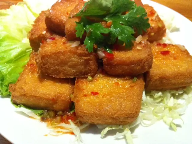 炸的金黃酥脆的表皮,裡面是口感很嫩的雞蛋豆腐
