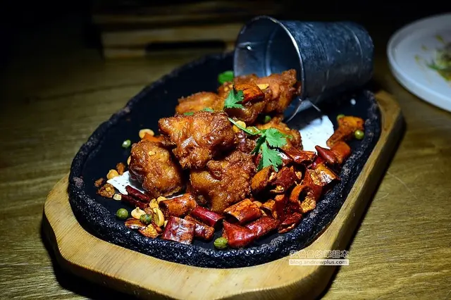 薄脆麵衣上頭有甜甜的粉,裡頭的雞肉軟嫩辣勁十足,一旁的辣椒餅乾也能一起享用。炸雞的確是不錯吃啦! 不過平常也吃了不少炸雞了,也不太覺得令人驚豔! 但是一旁的辣椒餅乾就很厲害了!! 吃起來就像是硬脆的餅乾,但是包裹著一層辣椒,雖然很辣,但是咬起來的口感超棒的! 最後所有的辣椒餅乾就全都進了我的胃裡面,超適合下酒的!