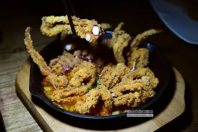 ▼整隻個頭不小的魷魚,外層裹著酥脆的麵衣,底層帶有甜椒的酸甜醬汁能提升整體美味度,簡單來說就是酸酸甜甜又酥酥脆脆的啦!