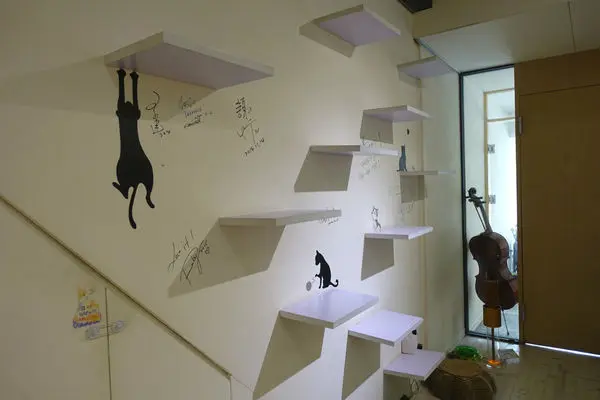 讓貓咪大哥大姐們悠閒自在地伸展筋骨~牆上還有不少名人簽名。