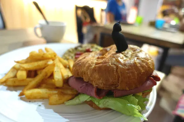 喵吧咖啡廳的新品亮相,煙燻牛肉起士可頌($180),