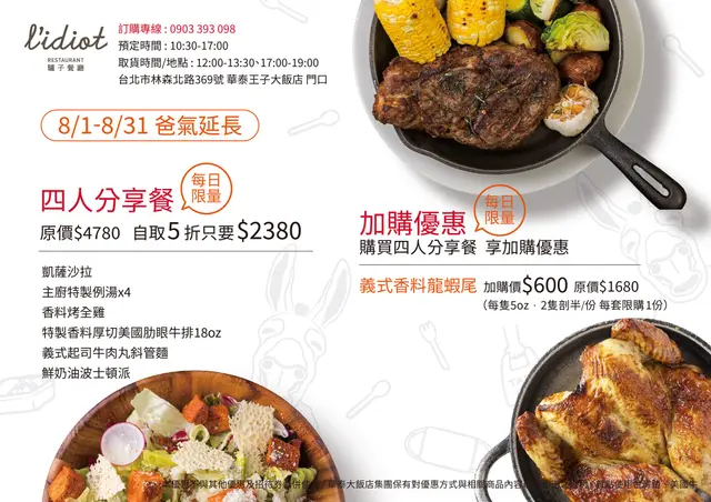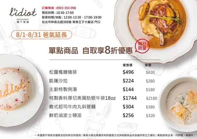 L’IDIOT RESTAURANT 驢子餐廳優惠DM與訂購方式