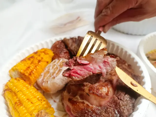 誘人的粉紅色的牛排色澤!肋眼牛排含有豐厚的油脂相當好入口