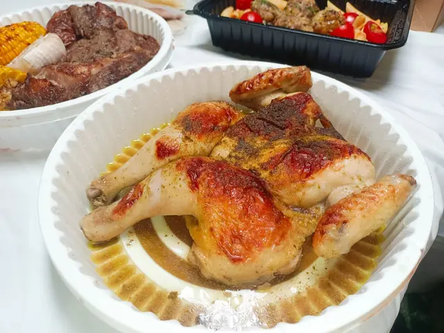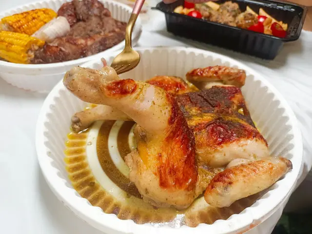 餐盒中都是滿滿的肉汁,這一份香料烤全雞的尺寸比起一般烤雞略小!
