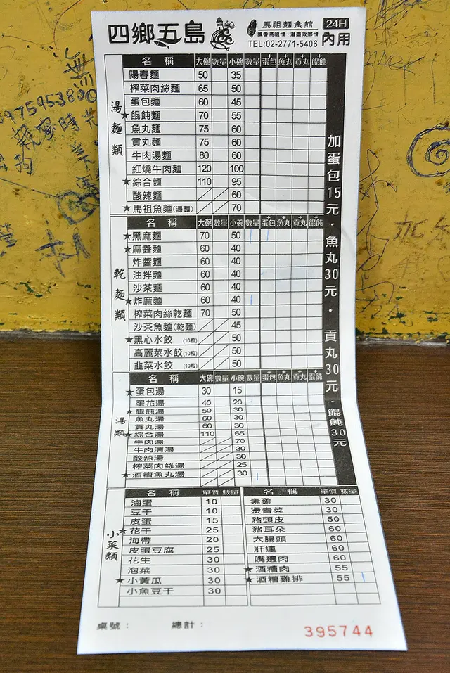經營超過二十年的四鄉五島馬祖麵食館是全天候24小時營業,對於肚子餓夜貓族們是個很不錯的選擇。
