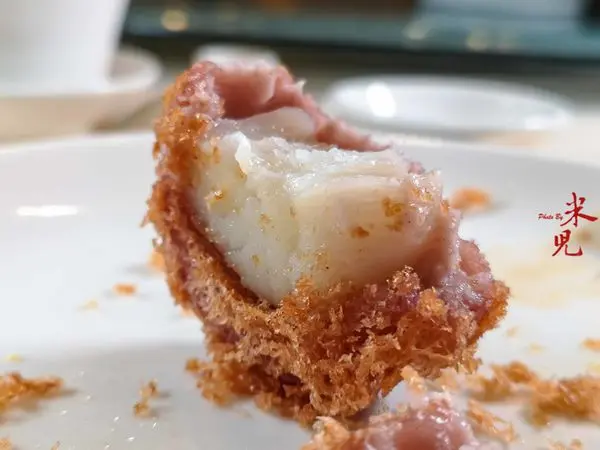 荔茸鮮干貝,480大洋。沒想到干貝和芋頭居然如此合拍,主廚用蜂巢荔芋角的概念做成的芋泥,裹上北海道大干貝後炸過,芋頭酥中帶綿,干貝鮮嫩多汁,難怪很多人大推這道。