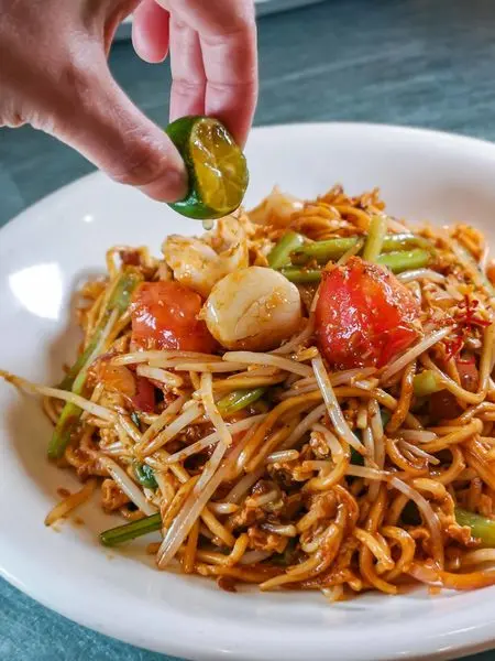 新加坡馬來炒麵 ,468大洋。馬來西亞人喜歡用黑醬油來炒東西,這道馬來炒麵就是用黑醬油炒出來的,所以色澤較深,可是這很考師傅的火工,因為不能炒得真的黑呼呼的呀~~這裡的師傅炒得很不錯,因為銀芽不但掐了頭尾,吃起來也是嫩脆不軟趴的。擠上金桔汁拌均更好味。
