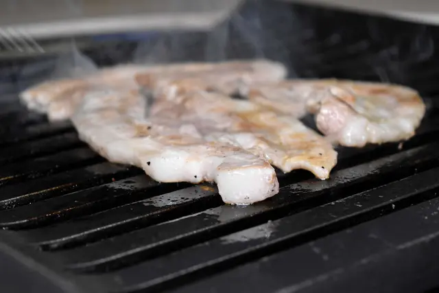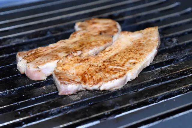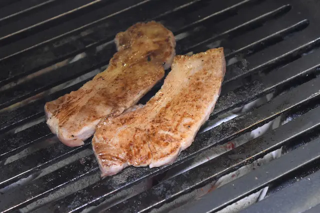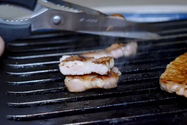 整片炙燒到9分熟左右.豬肉需要全熟.但是不能讓豬肉吃來硬梆梆乾澀才是手藝