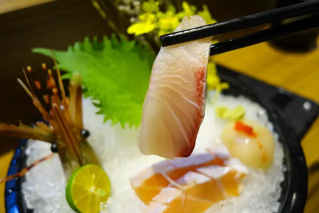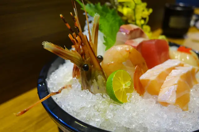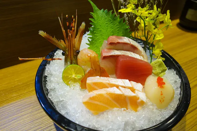 內容物包含牡丹蝦/黑鮪魚/紅甘/干貝/鮭魚