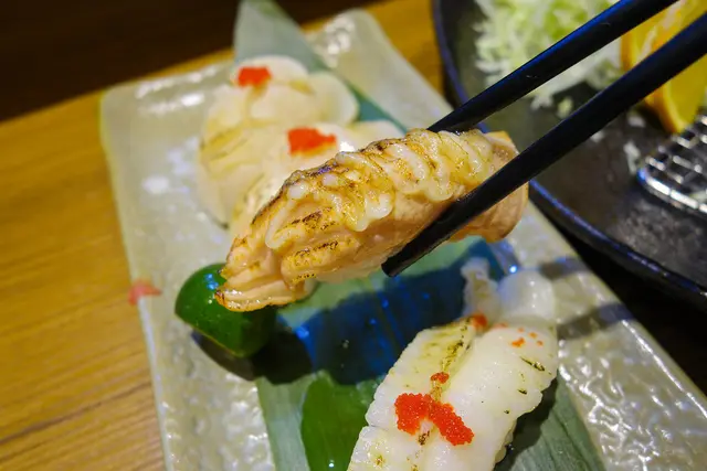 因為有了生魚片所以握壽司我們以炙燒或是熟食為主
