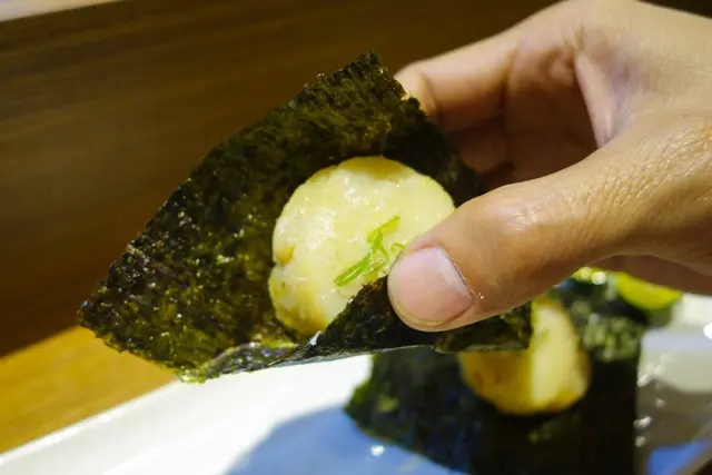海膽吃起來滿甜的!裡頭包的米飯還不少