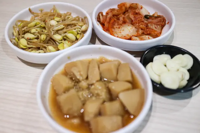 店內提供三種韓式小菜/生蒜片/生菜,可以免費再續一次