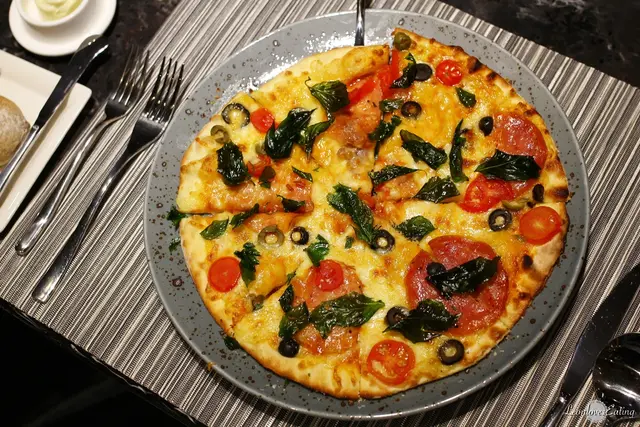 ▲ 他們家的披薩屬於薄片型,底層的麵皮卻跟我所認知的薄片披薩有點不同,口感不怎麼脆硬