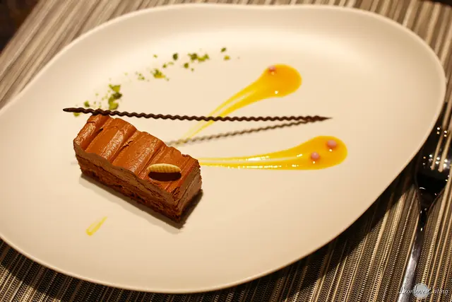 ▲ 甜點部分則是師傅特製的巧克力蛋糕,擺盤非常精緻,又不會過於花俏。