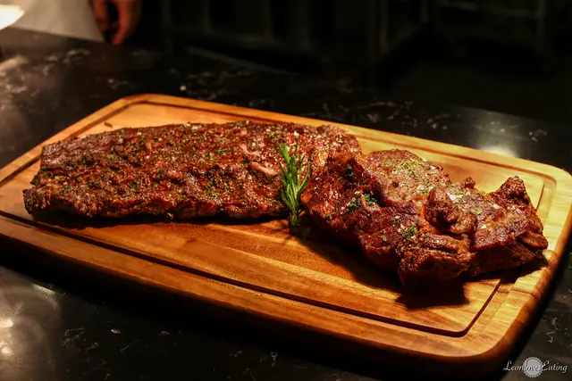 餐盤上的牛排,同時包含了肋眼,以及晚餐時段獨有的老饕,一次做成十人份供當天隔壁桌的客人享用