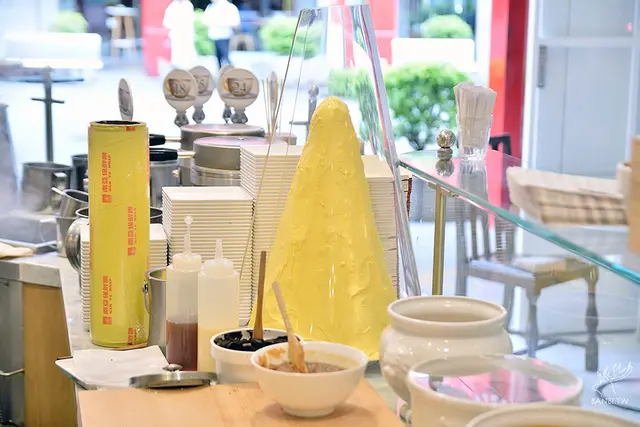 為了還原新加坡土司工坊的場景,做了一個奶油山擺設在店裡(店內用來使用塗抹在餐點上的奶油山則是另一座較小的)。
