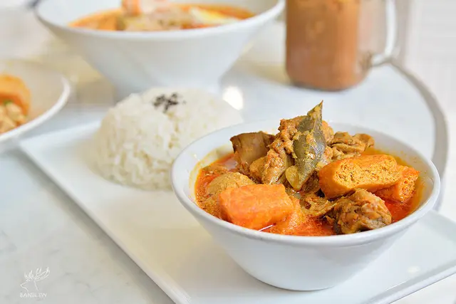 豆包、紅蘿蔔、馬鈴薯、雞肉,同樣是帶有南洋風味感的一道料理,整體味道順口、中規中矩,我個人較喜歡娘惹麵線與叻沙。
