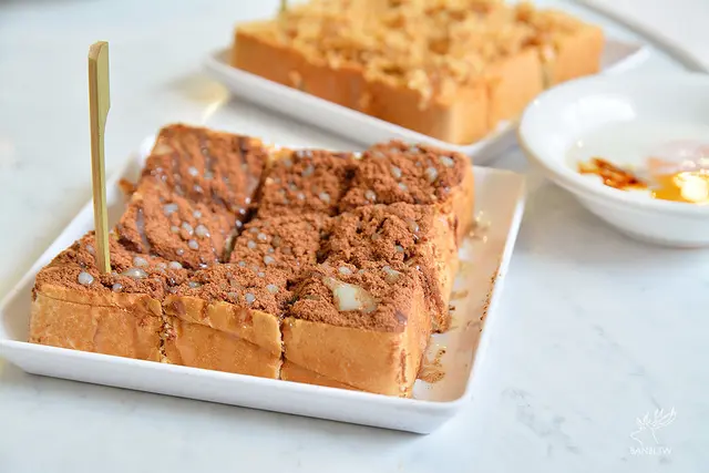 厚片吐司上鋪滿了美祿巧克力粉與淋上煉乳,我個人不大習慣這樣的吃法,所以較不合味。