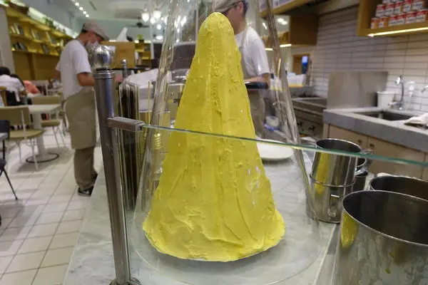 櫃台邊還有座吸睛的黃色奶油山,熱量爆表哇哈哈!!!!