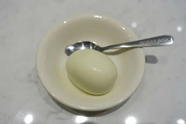 白煮蛋可以選擇半熟或全熟,但因為欠人K有點怕太生的蛋(遜~),