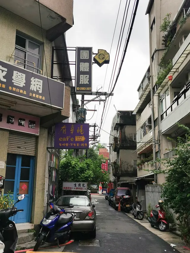 士林捷運站一號出口旁小巷子交錯,下了小樓梯會發現,這一個紫色指示招牌,順著招牌引領的方向,帶我們前往有幸福CAFE
