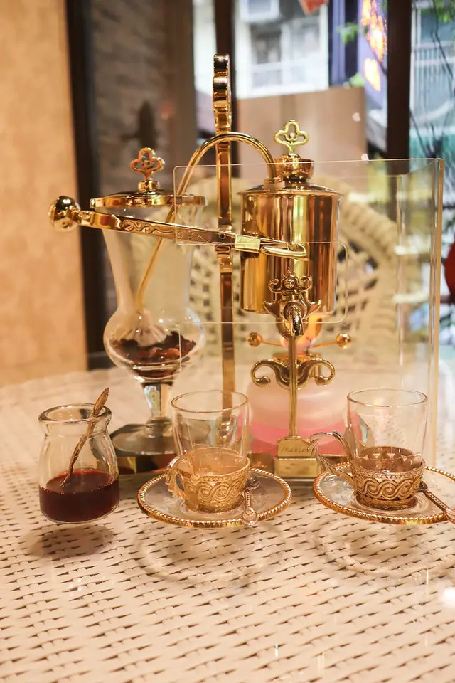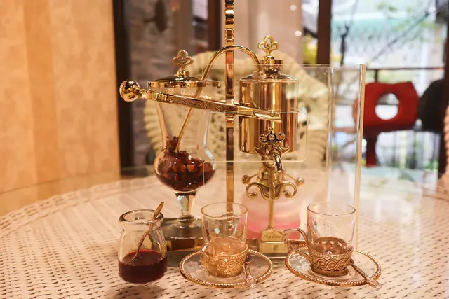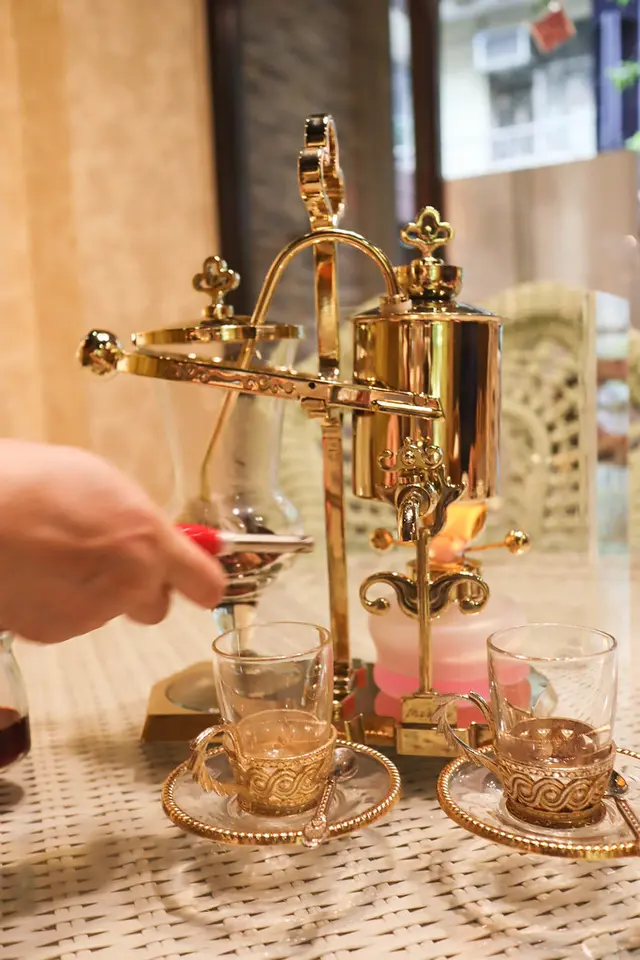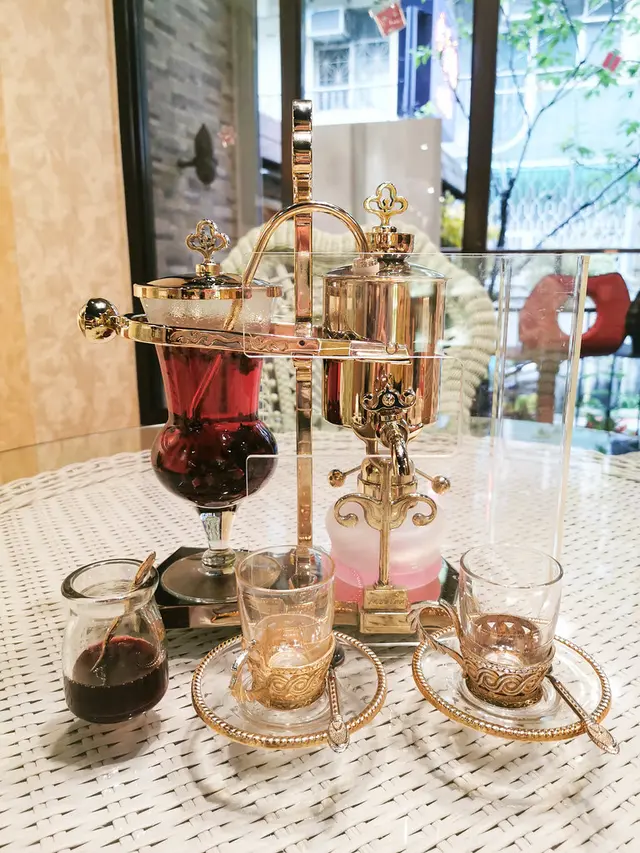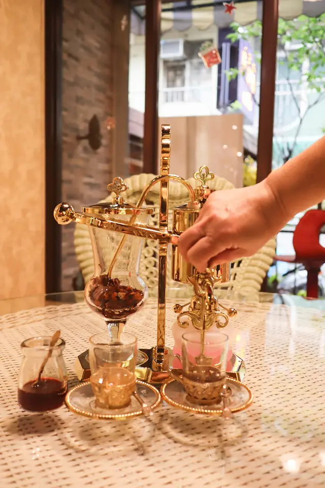 後面會利用虹吸原理,將已經泡開的花果茶水回吸回到金屬壺中